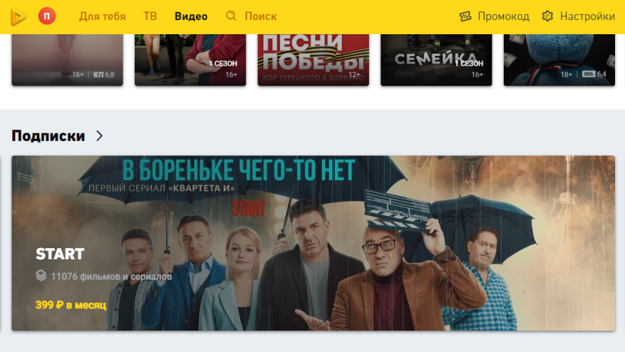 В разделе «Подписки» перейдите в карточку START.