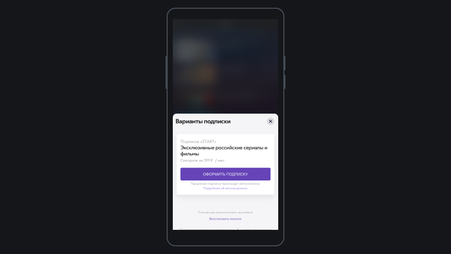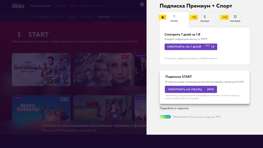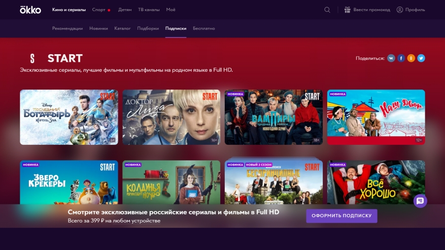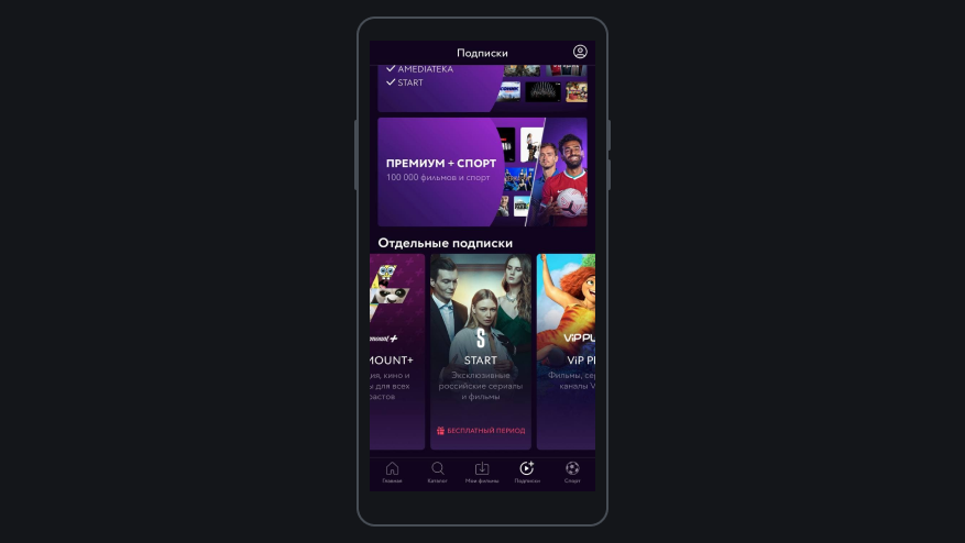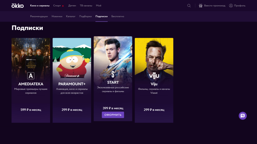 Откройте раздел «Подписки» и выберите карточку START.