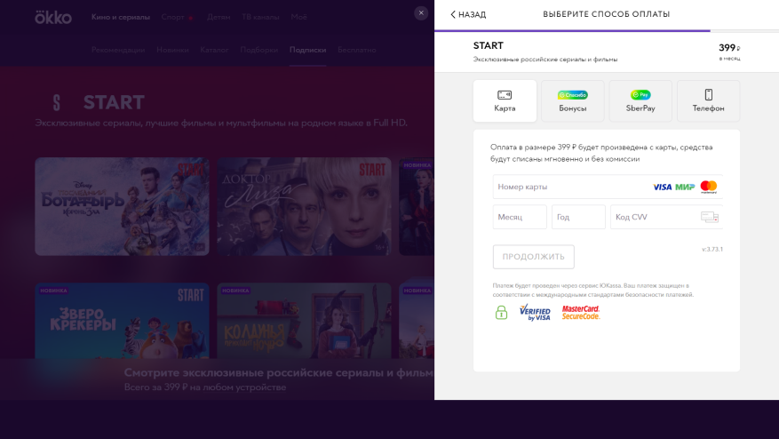 Выберите карточку START, нажмите «Оформить».